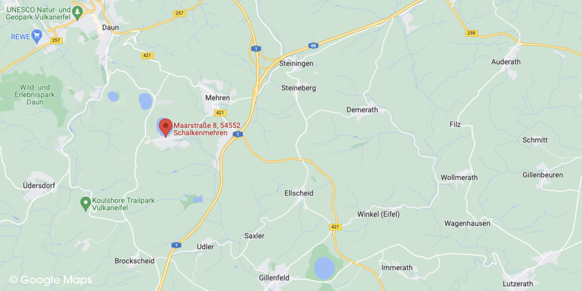 Schalkenmehren liegt im Herzen der schönen Vulkaneifel und bequem über die A1 und A48 bis zur Anschlussstelle Vulkaneifel zu erreichen.