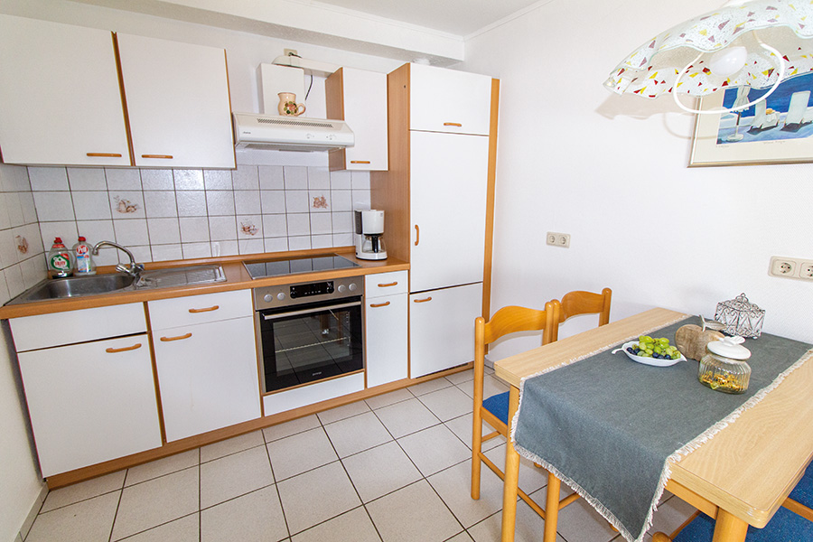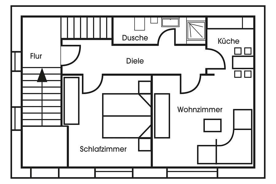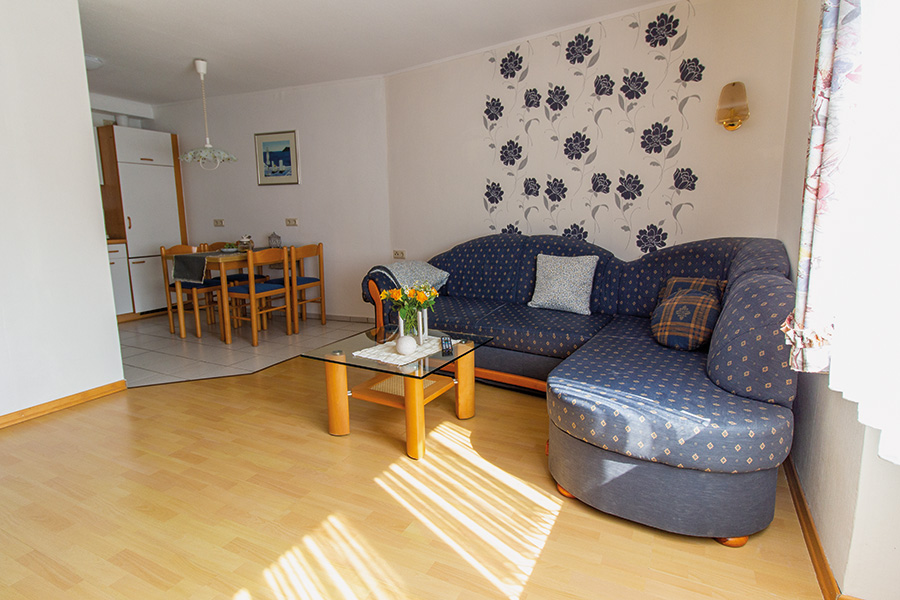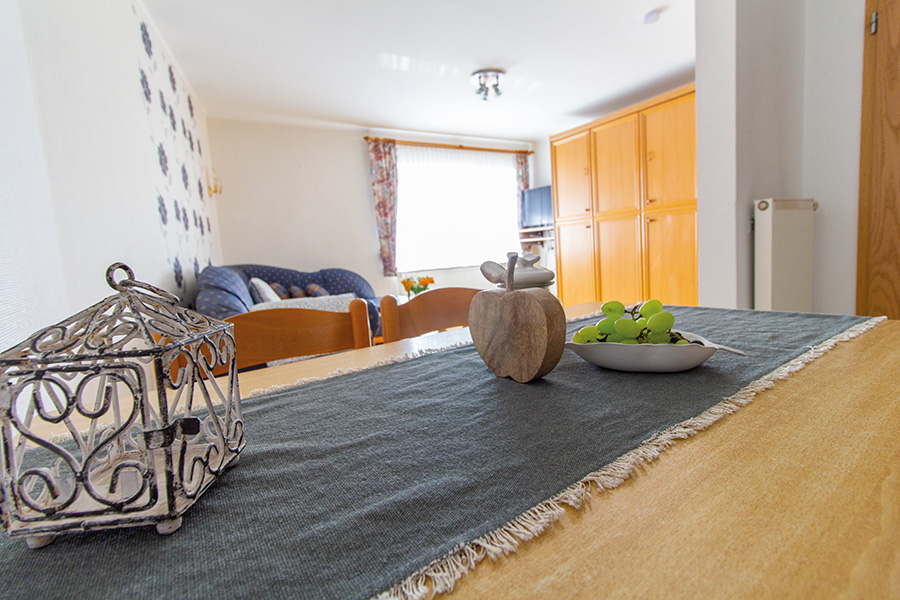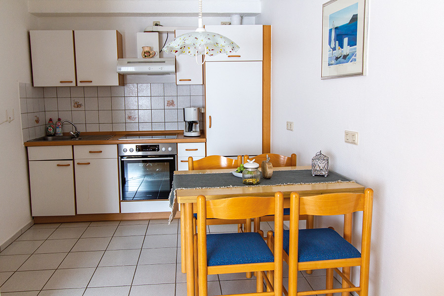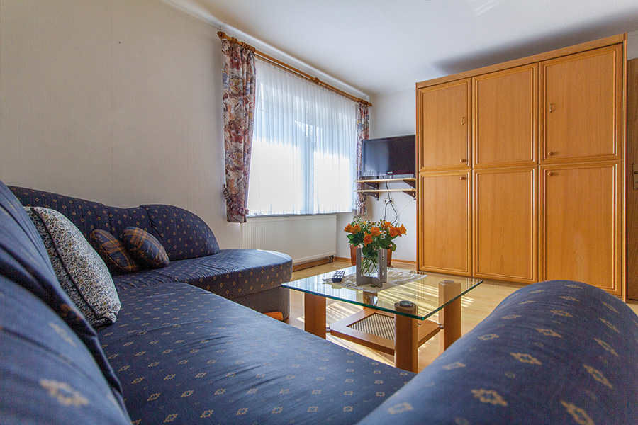 Unsere 53qm große Ferienwohnung kostet ab 39 Euro pro Nacht zzgl. Nebenkosten und bietet Platz für vier Personen. Sie umfasst ein Schlafzimmer mit Doppelbett, ein Wohn-/Esszimmer mit Küchenzeile, Schrank-Klappbett und Flachbildfernseher sowie ein Bad mit Dusche und WC.