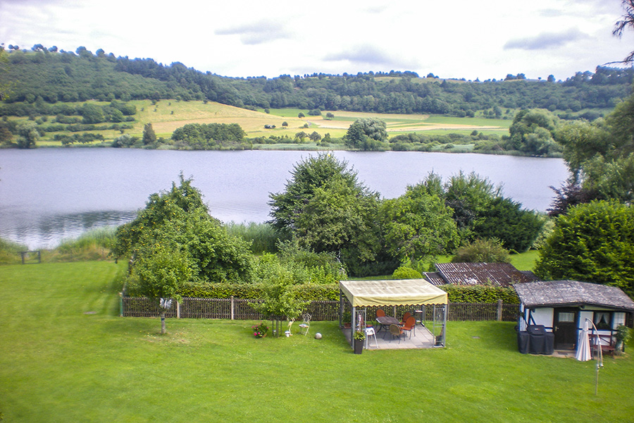 Die Wohnung liegt in unmittelbarer Nähe des Maares und verfügt über eine eigene Liegewiese am Wasser. Dort haben Sie die Möglichkeit, sich zu entspannen oder zu grillen - die Liegewiese reicht bis an das Maarufer.